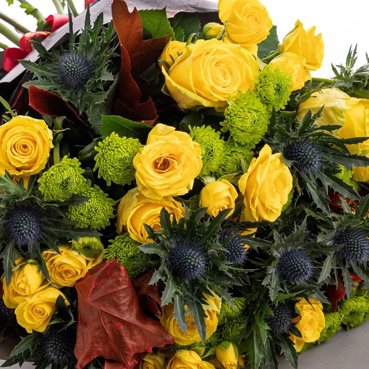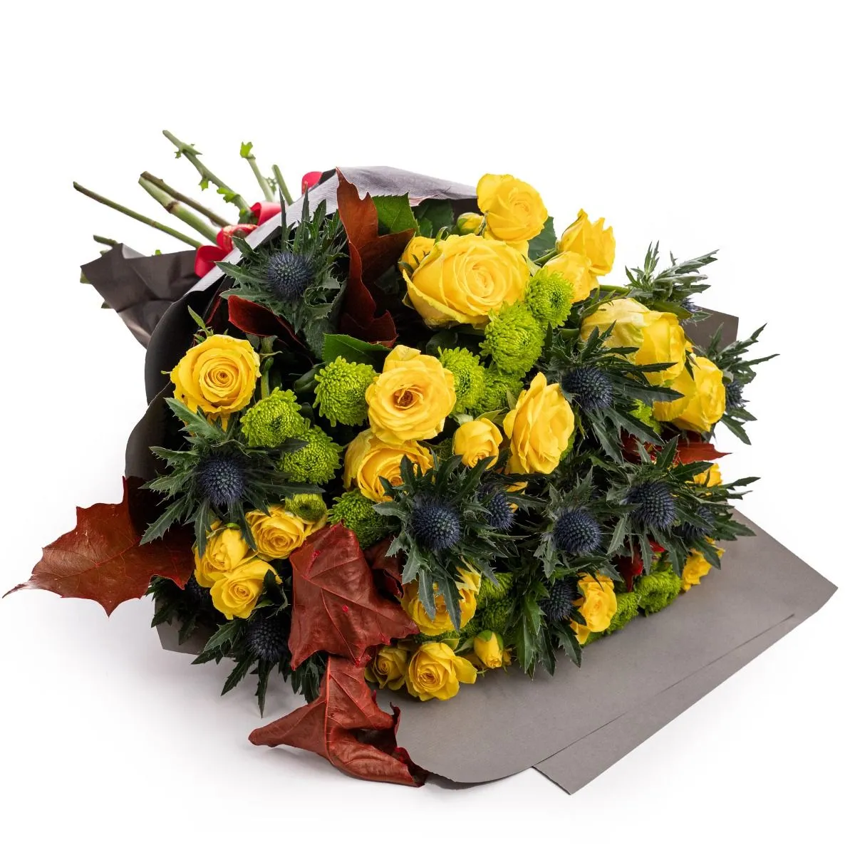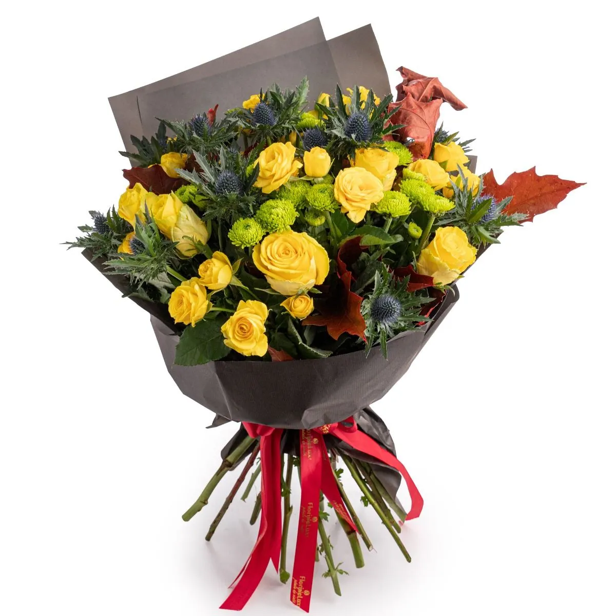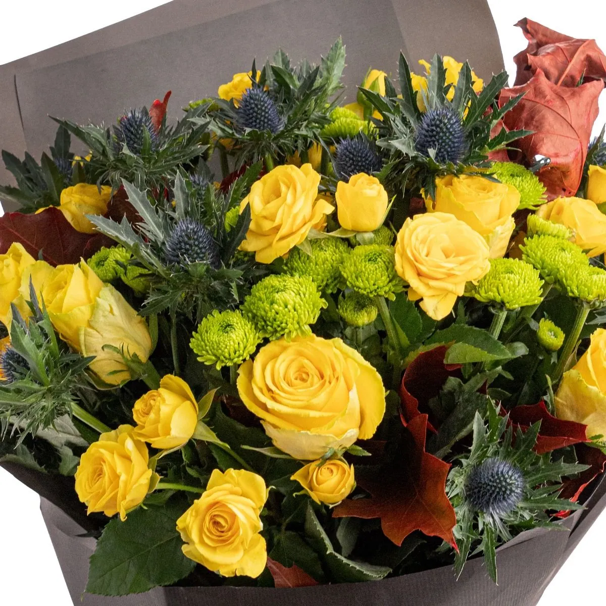 Buchet trandafiri galbeni Autumn Love - Iti doresti sa spui "Te iubesc!" intr-un mod unic? Am creat un buchet special ce combina elemente exotice cu trandafirii galbeni, un simbol clasic al iubirii, dar si al armoniei si admiratiei, fiind perfect atat pentru iubita sau sotie, cat si pentru mama sau sora.