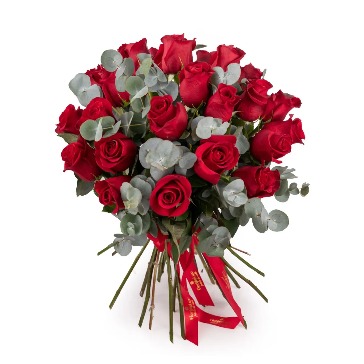 Trandafiri rosii pierduti in eucalypt este buchetul care iti demonstreaza ca la FlorideLux gasesti cadouri simple, dar care prin maiestria lor, culorile purtate sau parfumul dominant pe care il detin reusesc sa isi lase amprenta pe retina si sufletul tau. Trandafirul este floarea perfecta in orice combinatie ai alege-o.